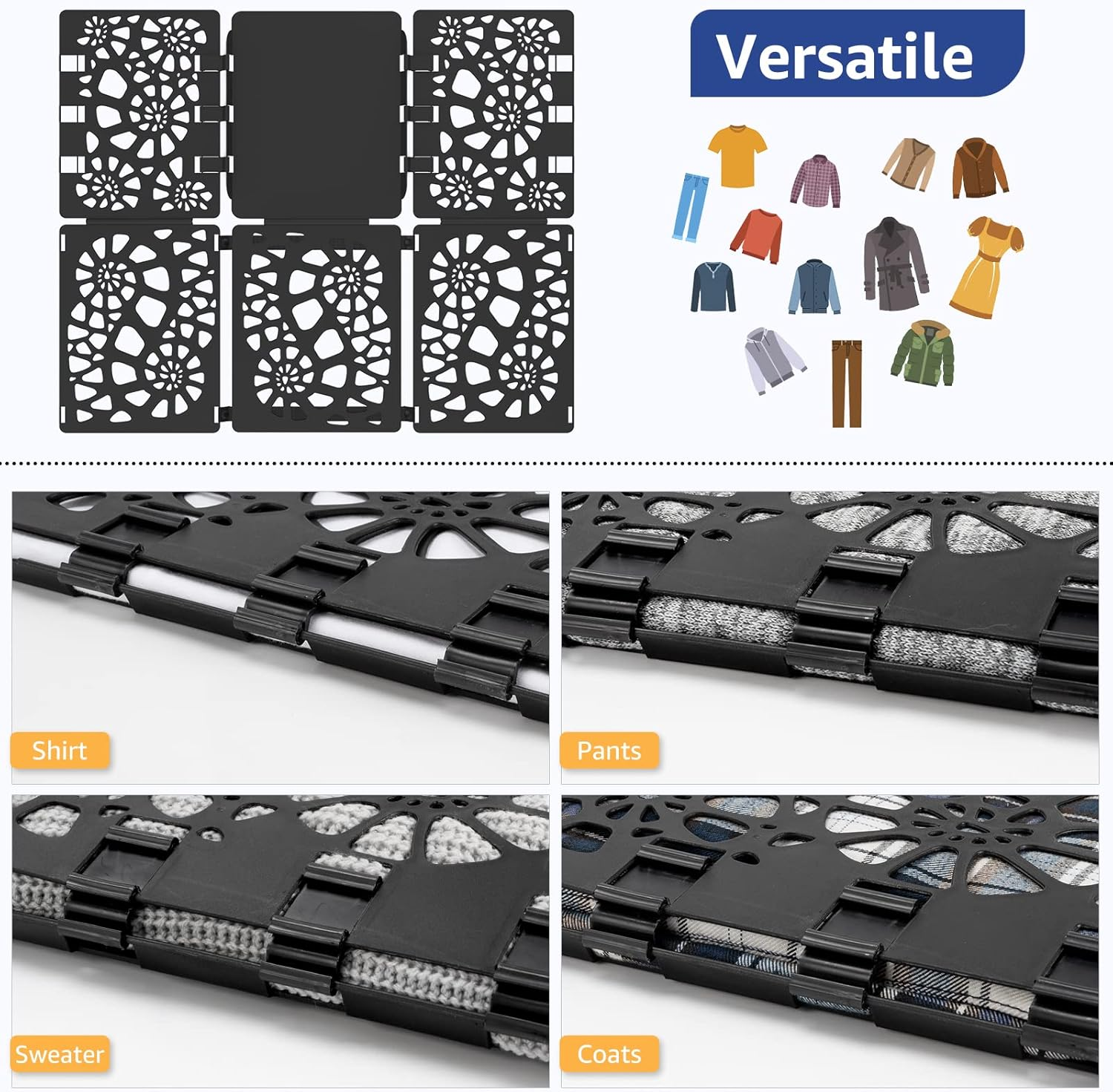 - Effortlessly Neat Folds: Simply place your garment on the folding board and follow the easy steps. Anyone can achieve consistently neat folds with ease. Transform your messy piles into an organized, wrinkle-free closet